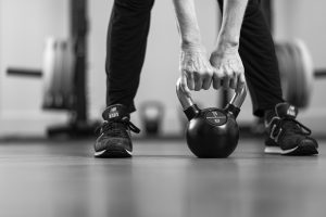 person lifting a weight in gym safely black and white